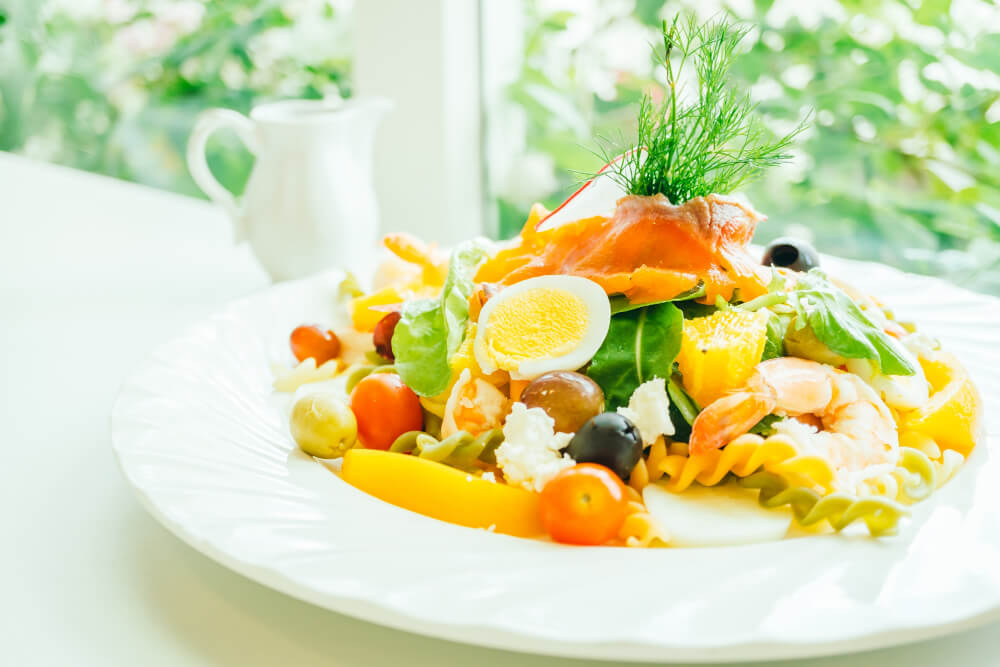 義大利麵:選擇全麥義大利麵,搭配番茄醬、蔬菜和雞肉或海鮮。
