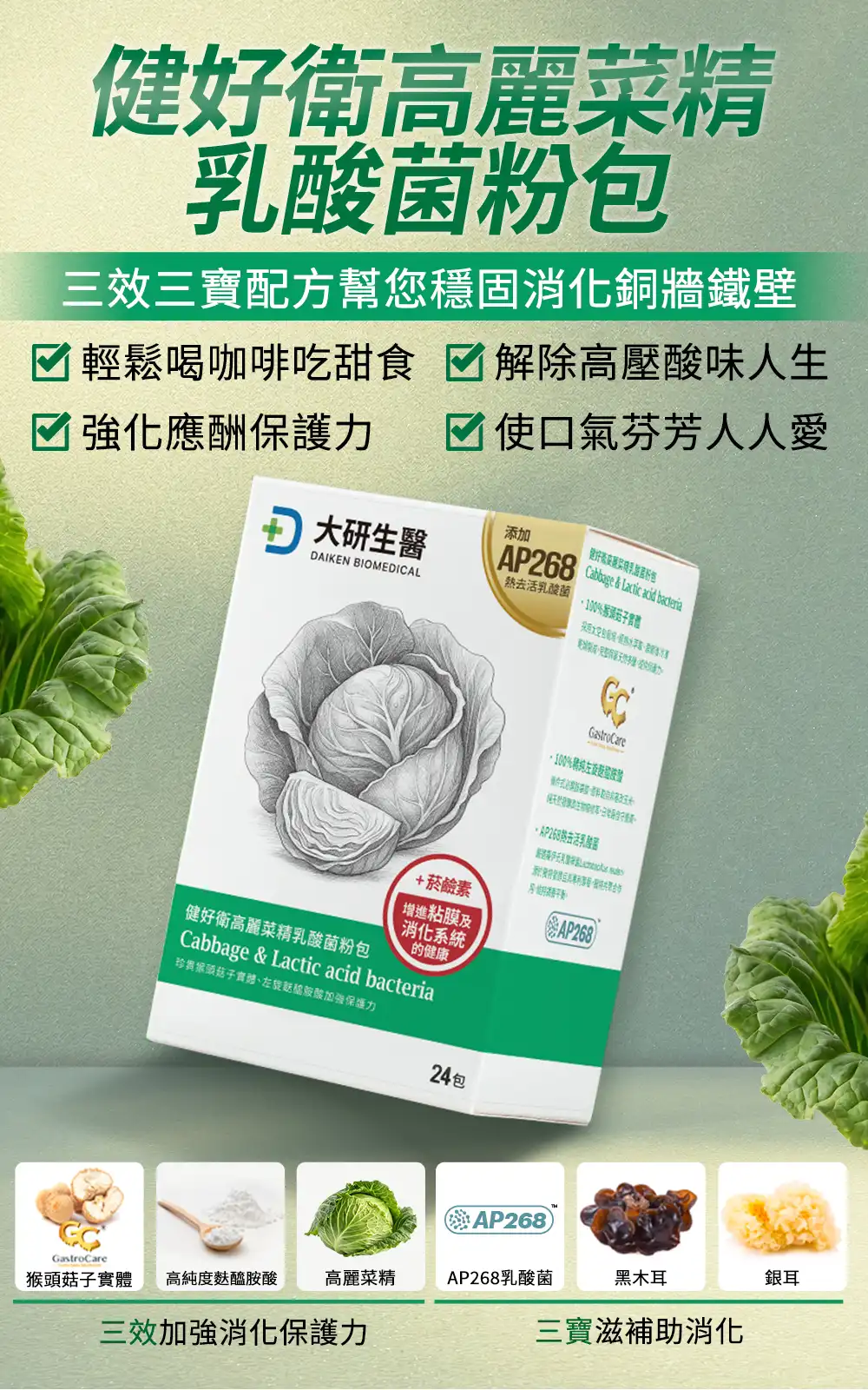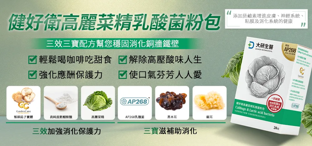高麗菜精X乳酸菌X猴頭菇X麩醯胺酸X木耳銀耳X菸鹼素