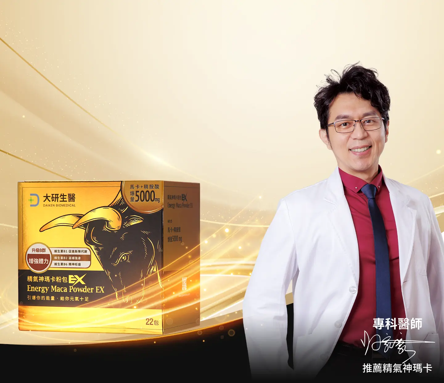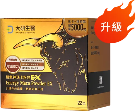 拒當躺平族!體力不支、軟弱時刻…讓你不想努力了?!男性維持強漢自尊必備,大研生醫研發團隊集聚世界之力,嚴選美國天然所瑪卡、韓國大廠L-精胺酸、西伯利亞人蔘等關鍵精力成分,巔峰應援的足量頂規配方,幫你攀登成就各類領域佼佼者,體力加分不怕延長賽,持續衝刺為自己贏得一波波喝采。